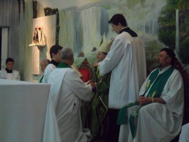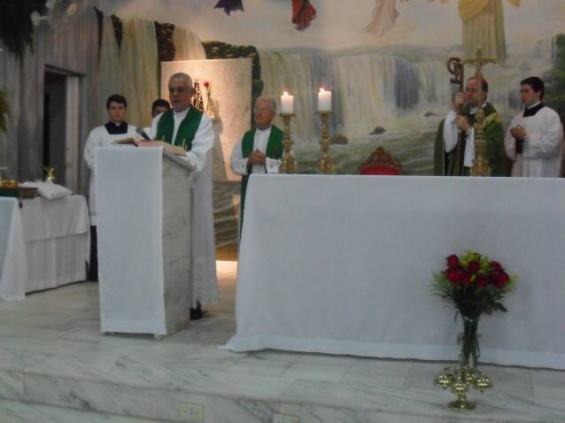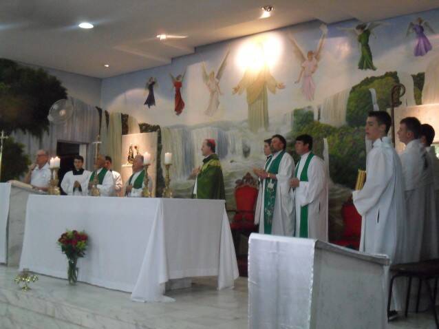 Bispo diocesano de Foz do Iguaçu, Dom Dirceu Vegini, empossou em missa solene na noite desta quarta-feira (06) o novo administrador da Paróquia São Paulo Apóstolo, no bairro Maracanã, Pe. Flávio Augusto Bittencourt de Aguiar.