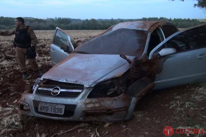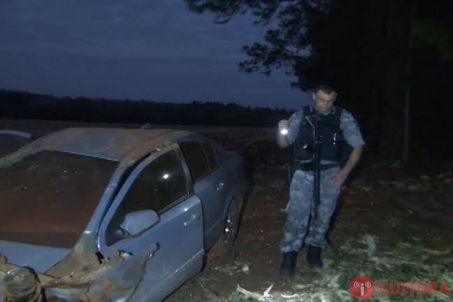 O motorista acabou capotando o carro e fugindo em direção a um matagal. No painel do carro estava um rádio que monitorava o deslocamento policial. As autoridades constataram ainda que o veículo é roubado no Estado de São Paulo. O condutor não foi alcançado e está foragido.