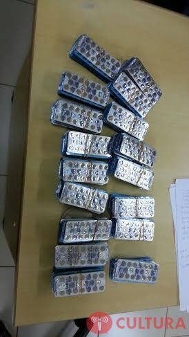 A mala foi passada no scanner de fiscalização, onde foi constatado transporte ilegal de 1300 comprimidos de Pramil de 50 mg, 25 comprimidos de Redufast e 168 comprimidos de Cytotec.