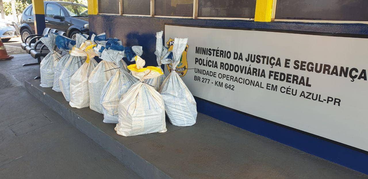 Equipes da Polícia Rodoviária Federal (PRF) e da Polícia Civil apreenderam 306,5 quilos de maconha na tarde desta quinta-feira (8) em Céu Azul, na região oeste do Paraná. A droga era transportada em um automóvel Volkswagen Polo com placas clonadas. Abordado na BR-277, o veículo havia sido roubado no último sábado (3) em Porto Alegre (RS).