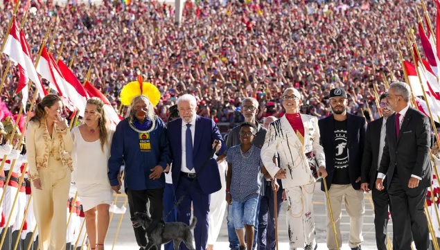 Luiz Inácio Lula da Silva tomou posse neste domingo (1º) como o 39º presidente da história do país. A celebração do início do mandato levou centenas de milhares de apoiadores à Esplanada dos Ministérios, em Brasília. Em um dos momentos mais marcantes, Lula recebeu a faixa presidencial de pessoas comuns, representantes do povo brasileiro.