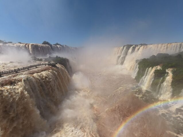 As Cataratas do Iguaçu, um dos maiores espetáculos naturais do mundo, mostraram toda a sua potência nesta semana. Na noite de segunda-feira (13 de outubro), a vazão atingiu impressionantes 7,1 milhões de litros por segundo — quase quatro vezes acima da média histórica, que é de 1,5 milhão de litros por segundo.