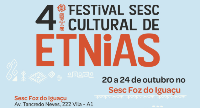 Para manter viva a riqueza cultural do povo paranaense, seja por meio da dança, das vestimentas ou de adereços, o Sesc promove de 20 a 24 de outubro a 4ª edição do Festival Cultural de Etnias na unidade em Foz do Iguaçu. Com uma vasta programação cultural foram convidados para participar do festival grupos de importância local, regional e até nacional que representam etnias que compõem a história da imigração do Paraná.