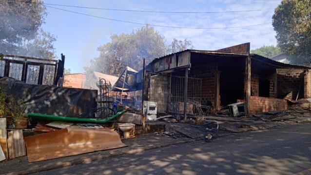 Amigos e vizinhos, em um esforço inicial de solidariedade, tentam limpar o local, que ainda está tomado por destroços e fumaça, mas a família precisa de auxílio para reconstrução e aquisição de itens básicos.