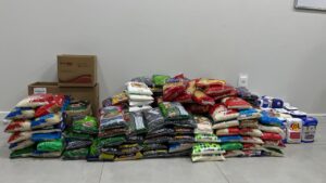 Entre os itens aceitos estão arroz, feijão, macarrão, farinha de trigo, açúcar e óleo de soja, que serão destinados à União Iguassuense de Apoio aos Pacientes com Câncer (Unican).