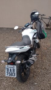 A motocicleta levada é a que aparece na foto, de placa BAB-7583. A polícia realiza buscas para tentar localizar o veículo e identificar o autor do crime, mas até o momento ninguém foi preso e a moto não foi encontrada.