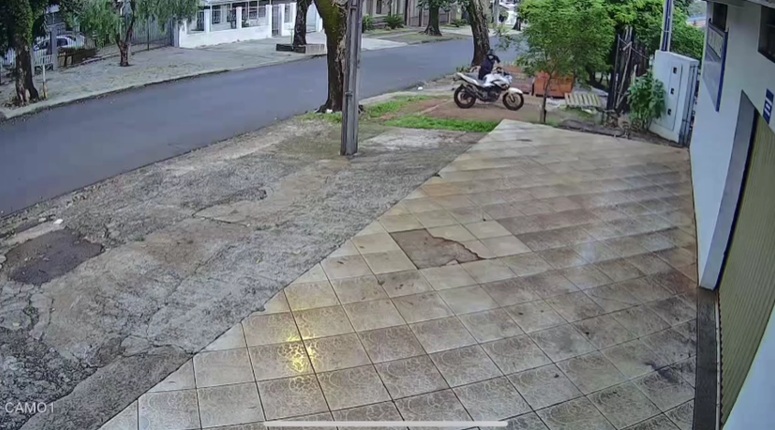 Uma câmera de segurança registrou o momento em que mais uma motocicleta foi furtada no bairro Campos do Iguaçu. A vítima pede ajuda das autoridades e da população para localizar o veículo e identificar o criminoso.