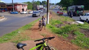 “Queremos acessibilidade para pedestres, PCDs, ciclistas e corredores.” É o que diz a faixa carregada pelo ciclista João Carvalho Tavares, que há meses realiza um protesto solitário embaixo do viaduto da Avenida Juscelino Kubitschek (JK), na ligação com a BR-277, em Foz do Iguaçu.