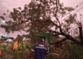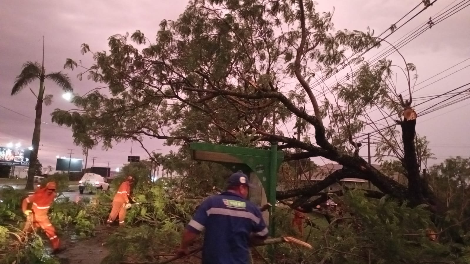 Na Avenida Surubi, uma árvore caiu sobre um estabelecimento comercial e atingiu a sacada de um apartamento. Duas pessoas estavam no imóvel no momento do incidente, mas ninguém ficou ferido.