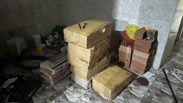 Simultaneamente, outra equipe entrou na residência, onde havia mais duas pessoas. No interior da casa, os policiais localizaram diversos volumes de maconha, totalizando 182,6 quilos, além de uma balança de precisão, partes do Gol e documentos em nome de um dos suspeitos.