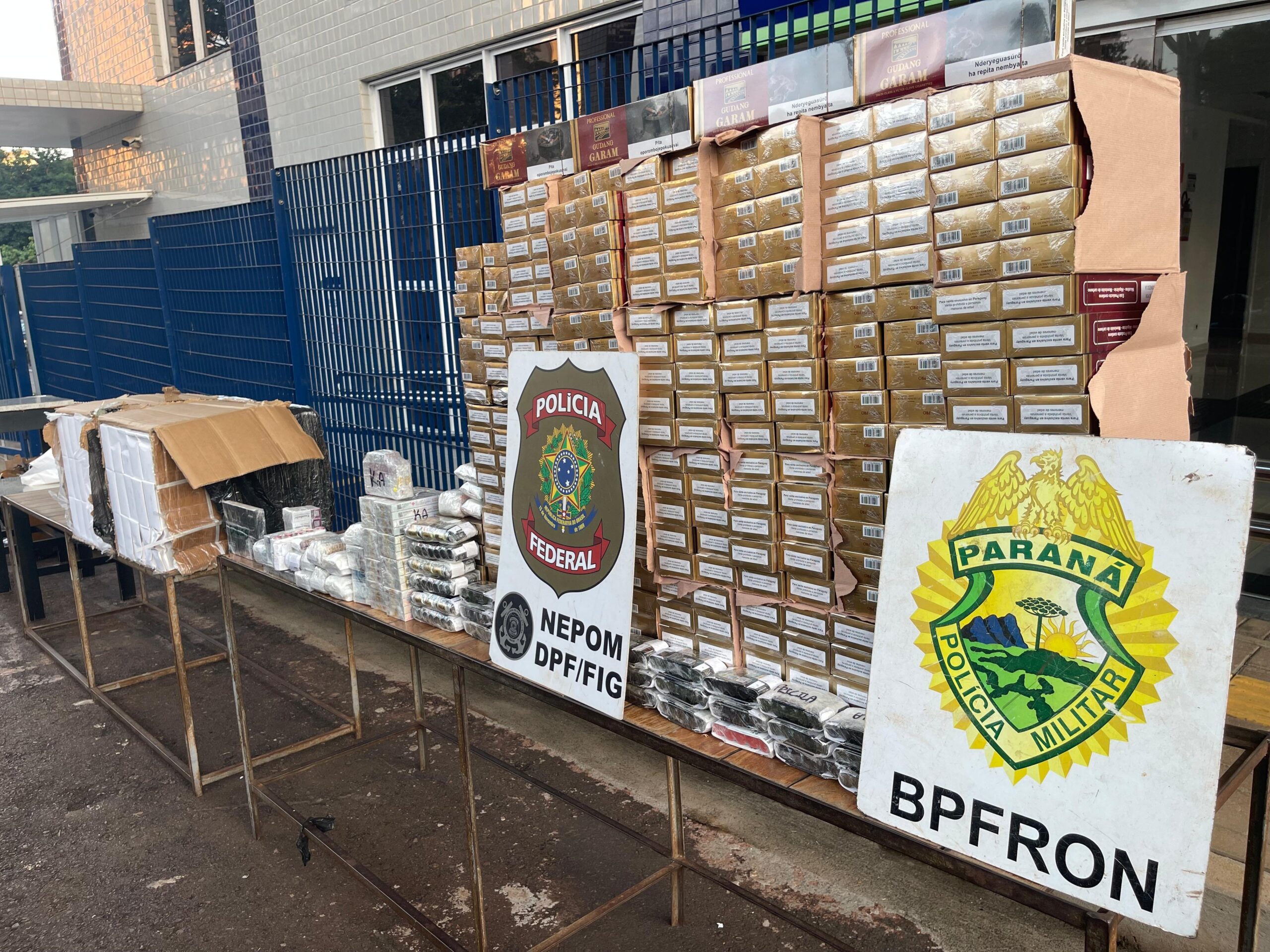 No interior do Fiat Siena, foram encontrados cinco volumes contendo cigarros, óculos e anabolizantes. O veículo e os produtos apreendidos foram encaminhados à Receita Federal para as medidas legais cabíveis.