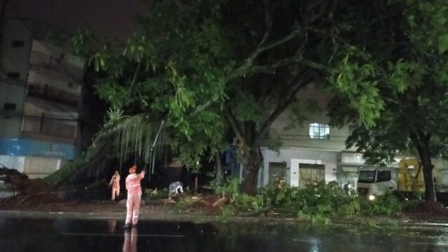 A Defesa Civil de Foz do Iguaçu segue monitorando a cidade após a tempestade registrada na noite deste domingo (16). A precipitação começou por volta das 19h e, até às 22h, acumulou cerca de 30 mm de chuva, segundo dados dos pluviômetros automáticos do CEMADEN. O temporal veio acompanhado de fortes rajadas de vento, afetando diversas regiões do município.