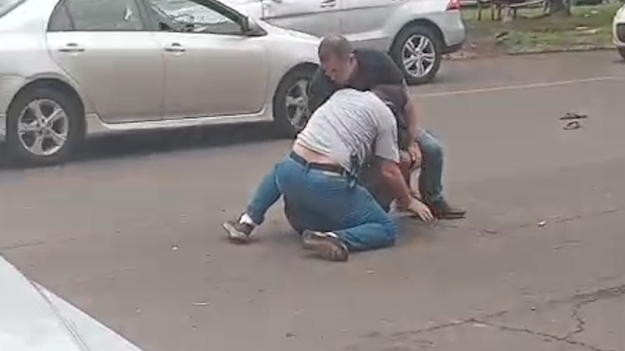O momento da prisão foi registrado por um pedestre, que flagrou a atuação dos policiais;