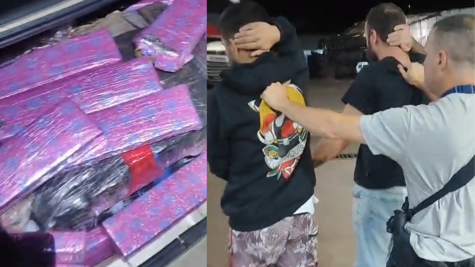 Dentro da loja de conveniência do posto, dois suspeitos receberam voz de abordagem. No bolso de um deles, os policiais encontraram a chave do automóvel onde a droga estava escondida. Ambos foram presos em flagrante.