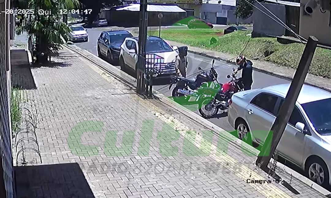 Mais uma motocicleta foi levada por criminosos em Foz do Iguaçu. Desta vez, o furto aconteceu na Vila A e foi registrado por uma câmera de segurança.