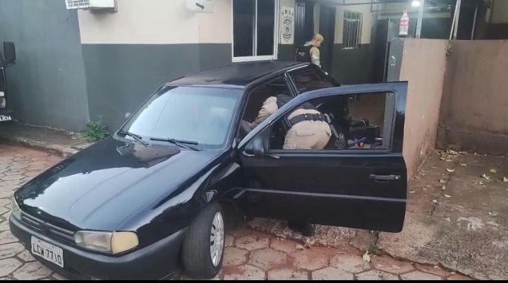 Durante a abordagem, os policiais identificaram que o veículo do suspeito estava com alerta de furto/roubo e apresentava placa adulterada. O motorista, nervoso com a abordagem, acabou confessando que estava de posse de drogas do tipo maconha.