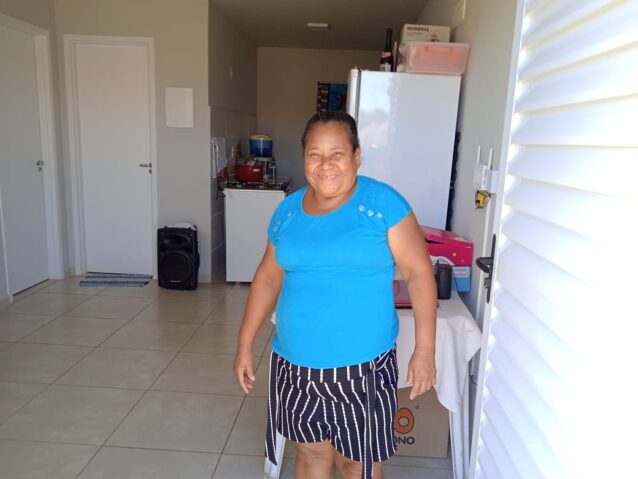 “Agora eu posso lavar minha louça tranquila, posso arrumar minha casa sem medo, posso dormir sem ficar olhando pra enxurrada. Meus filhos falaram: ‘mãe, agora a gente tem um lar de verdade’. Isso não tem preço.”