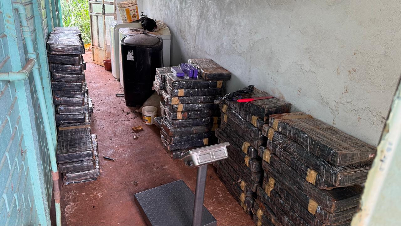 Na primeira residência, os agentes encontraram 3.066,7 kg de maconha prensada e uma motocicleta CB 300 furtada. Dois homens foram presos em flagrante. Também foram apreendidos uma Honda 125cc e um VW Gol adaptado para transporte ilegal de drogas. No segundo imóvel, os policiais encontraram mais 718,9 kg da droga e uma balança eletrônica, além de prender uma mulher de 22 anos.