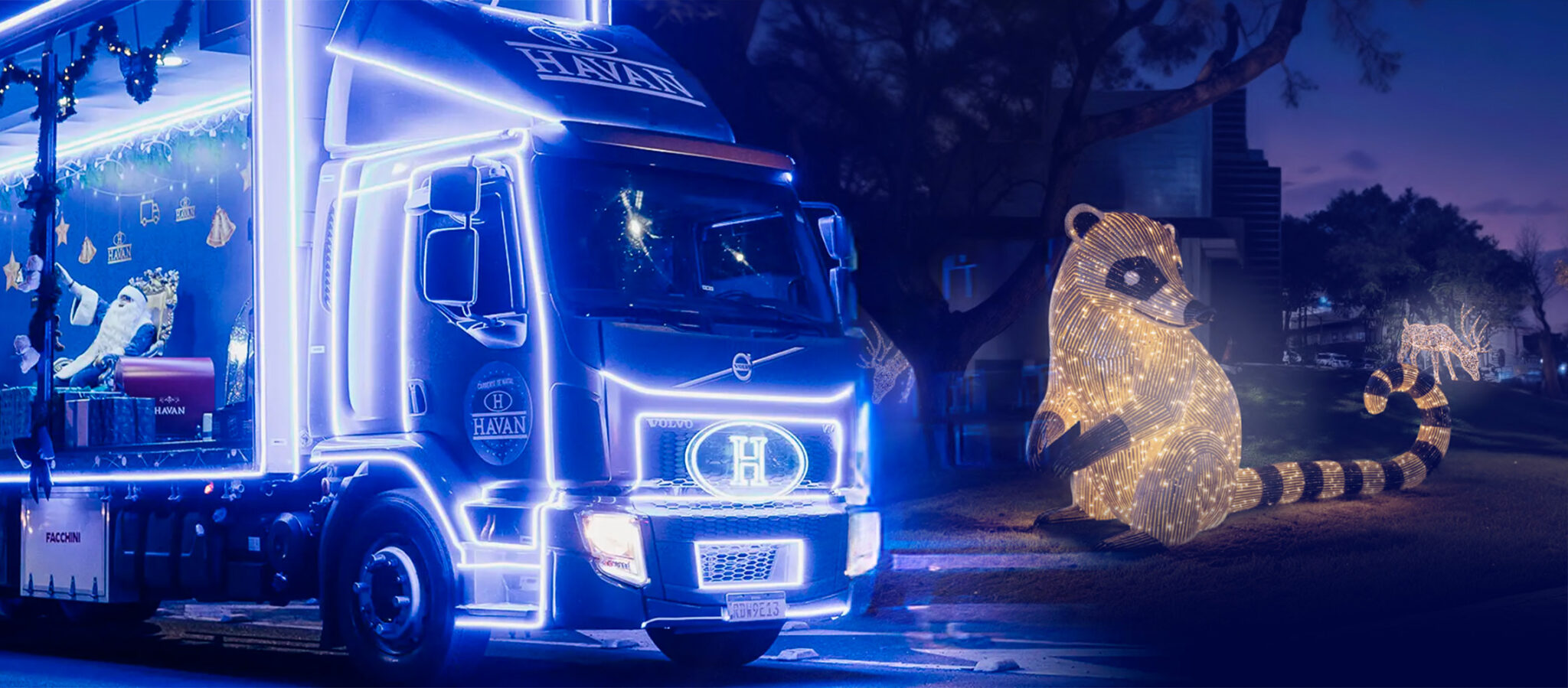 Foz do Iguaçu recebe neste ano a oitava edição da Carreata da Havan, formada por três caminhões cenograficamente ornamentados, que desfilam pela cidade ao som de canções natalinas e do tradicional jingle da empresa, com a presença do Papai Noel.