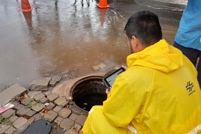 Nos locais onde o sistema de telemetria ainda não foi instalado, o monitoramento é realizado presencialmente por técnicos da Sanepar. A equipe segue um roteiro diário para verificar os pontos críticos e realizar manutenção preventiva, abrindo as tampas dos PVs para checar o nível de esgoto. Caso identifiquem excesso de água residuária, realizam a desobstrução necessária.