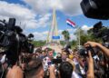 “O Paraguai precisava se conectar ainda mais com o Brasil. O progresso do Paraguai não significa prejuízo para o Brasil; pelo contrário, o progresso do Paraguai também é o progresso do Brasil”, afirmou Santiago Peña durante a cerimônia de inauguração da ponte, em Presidente Franco.