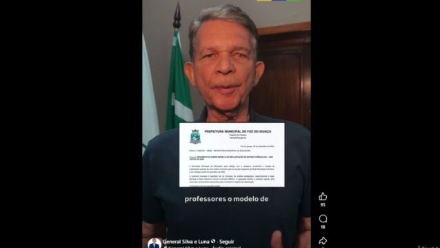 O prefeito de Foz do Iguaçu, General Silva e Luna, divulgou um vídeo nas redes sociais para esclarecer detalhes sobre a nova proposta de matriz curricular da rede municipal de ensino, prevista para ser implantada a partir de 2026. A medida havia gerado manifestações por parte de professores, que temiam a redução da carga horária de disciplinas consideradas essenciais.
