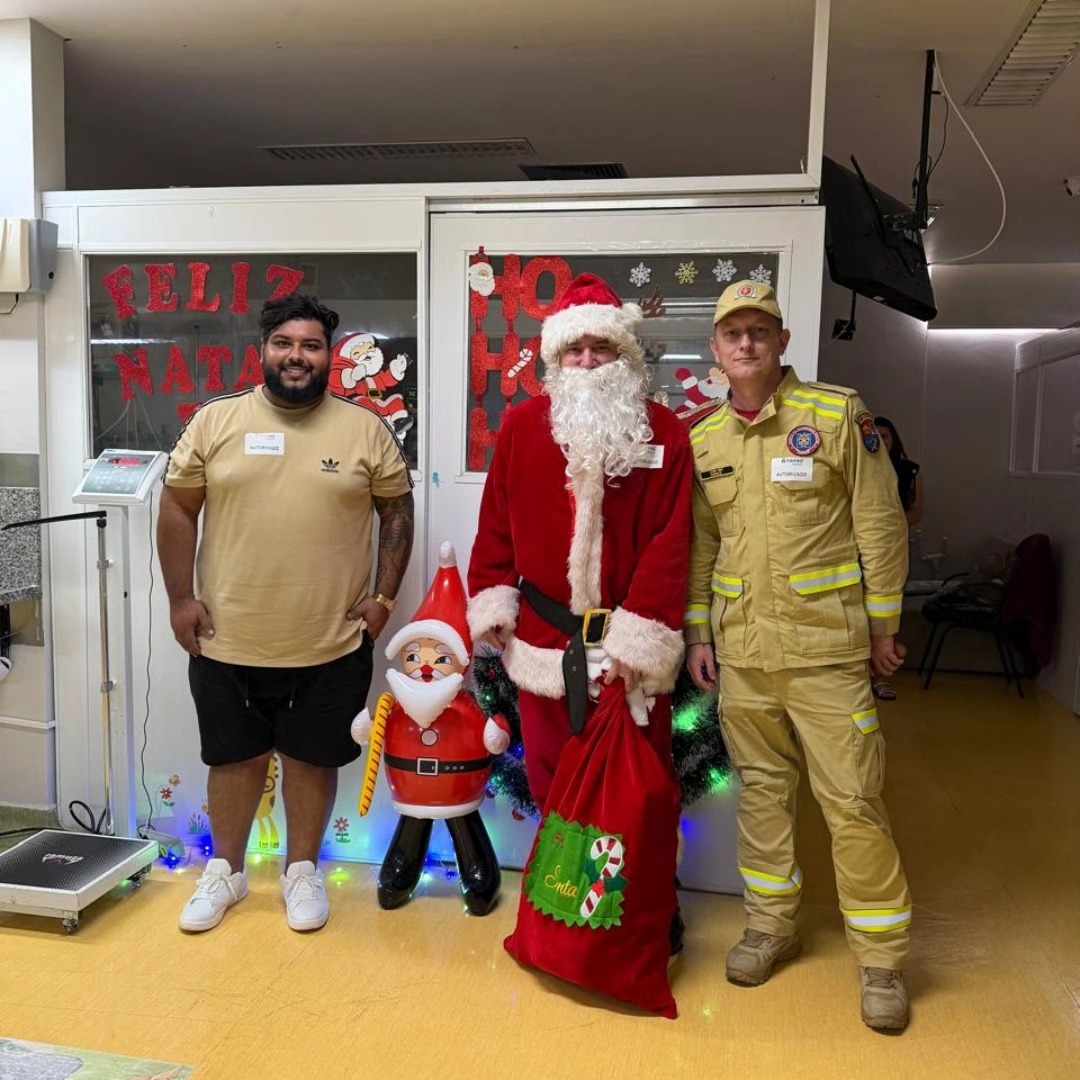 A chegada do Papai Noel ao Centro Materno Infantil Doutor Antônio Roberto Fava, na região central de Foz do Iguaçu, marcou um dos momentos mais simbólicos de uma ampla ação solidária realizada na cidade. O Bom Velhinho desembarcou em uma viatura do Corpo de Bombeiros, levando alegria a crianças e adultos com a entrega de presentes, doces e gestos de carinho.