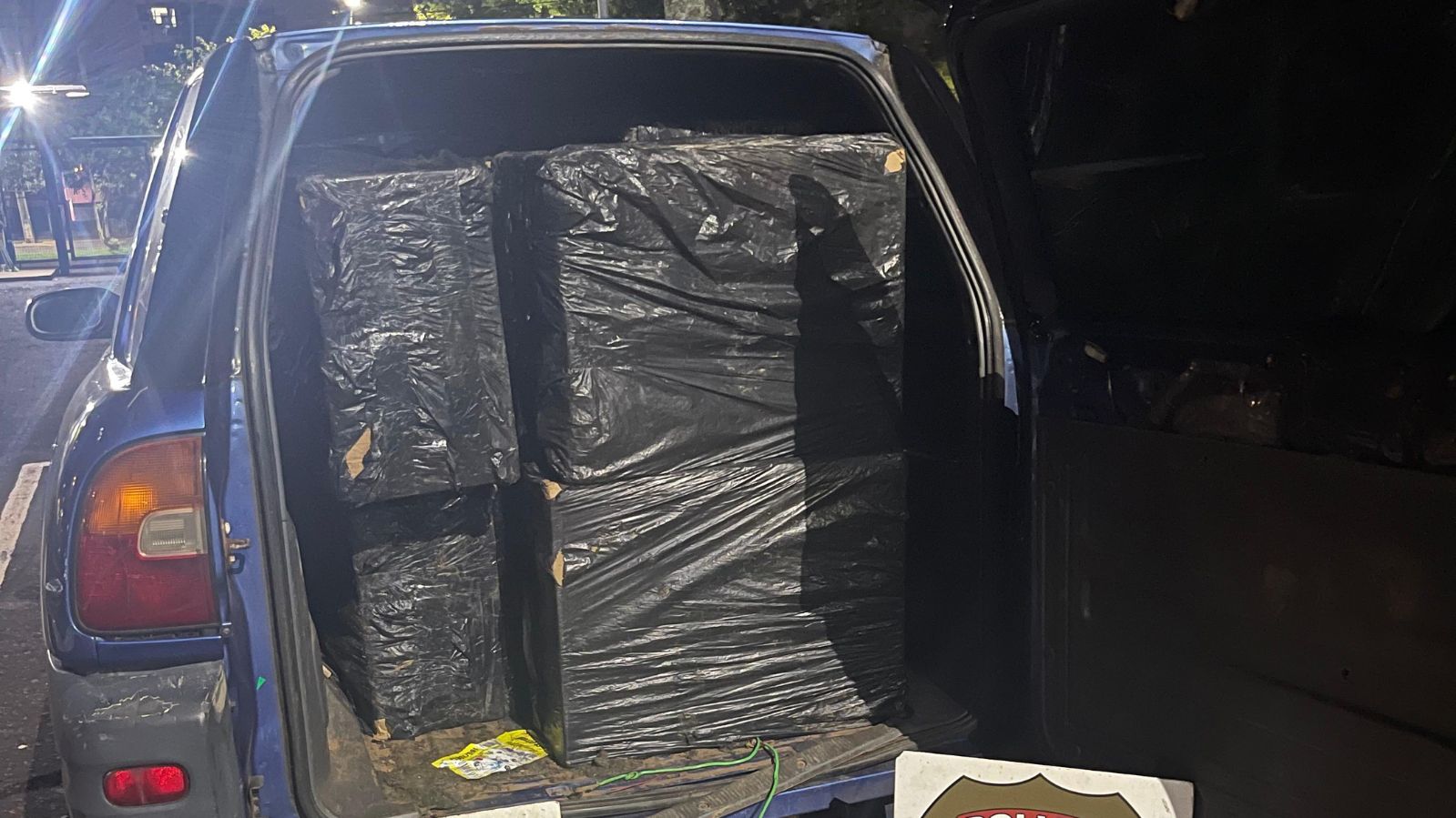 O automóvel, um Toyota RAV4 azul com placas do Paraguai, foi localizado e abordado pelas equipes. Dentro do carro, que estava adaptado para transporte de carga e possuía apenas o banco do motorista, foram encontradas 12 caixas de cigarros, somando cerca de 6 mil maços.