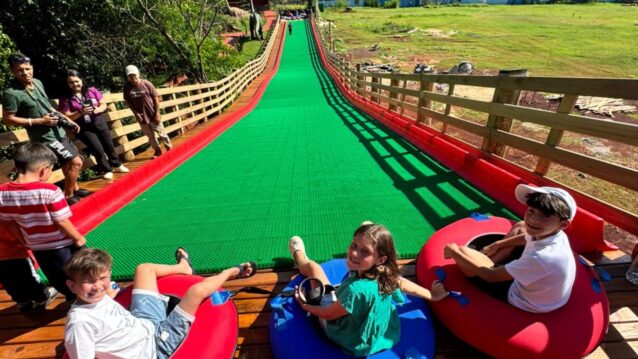 O Complexo Dreams Park Show, em Foz do Iguaçu, lançou uma nova atração para animar as férias de turistas e moradores da região. O Tubing Escorregassauro, instalado dentro do Vale dos Dinossauros, oferece uma experiência cheia de adrenalina com um escorregador gigante de 70 metros de comprimento, indicado para adultos e crianças.