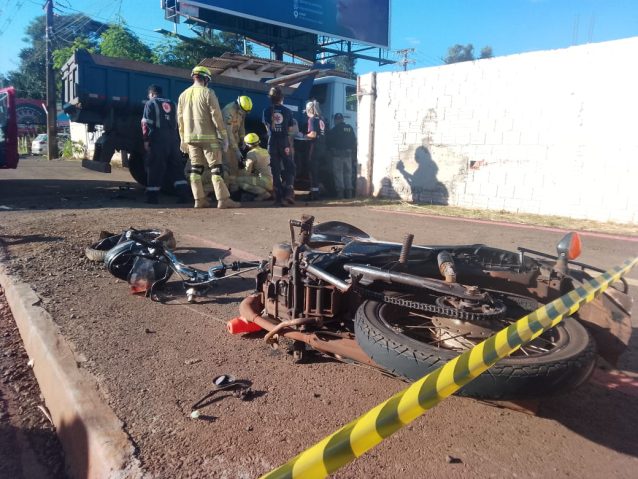 Um grave acidente de trânsito resultou na morte de um motociclista na tarde desta segunda-feira (19), na Avenida das Cataratas, em Foz do Iguaçu. A colisão envolveu uma motocicleta e um caminhão caçamba utilizado nas obras de duplicação da rodovia. Durante o atendimento da ocorrência, o trecho da Avenida das Cataratas ficou parcialmente interditado, provocando lentidão no trânsito. A vítima foi identificada como Cristian Douglas Piovesan, de 37 anos.
