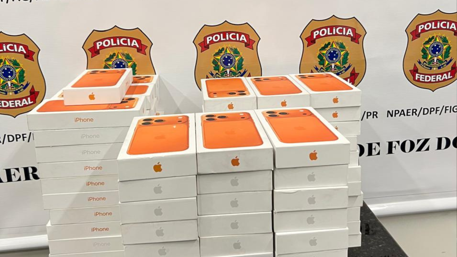 Polícia Federal apreendeu cerca de 100 iPhones sem nota fiscal durante fiscalização de rotina.