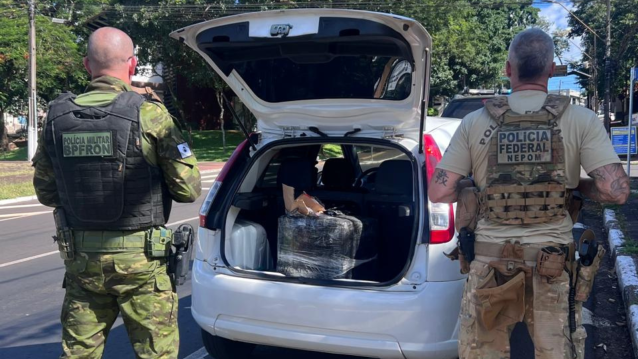 A ação ocorreu durante patrulhamento conjunto nas proximidades de um porto clandestino, quando os agentes identificaram um Ford Fiesta, com placas brasileiras, conduzido por um homem de nacionalidade brasileira. Durante a abordagem e vistoria no automóvel, o material ilícito foi localizado no porta-malas.