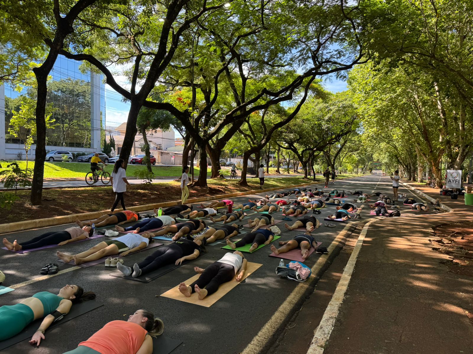 O evento foi considerado um sucesso de público pela organização, reunindo praticantes de yoga e pessoas que tiveram o primeiro contato com a prática, em uma manhã marcada pela integração e pelo acolhimento. A aula foi conduzida por Daiana Ribeiro, presidente da AYFI, em conjunto com a vice-presidente Marília Duarte da Silva.