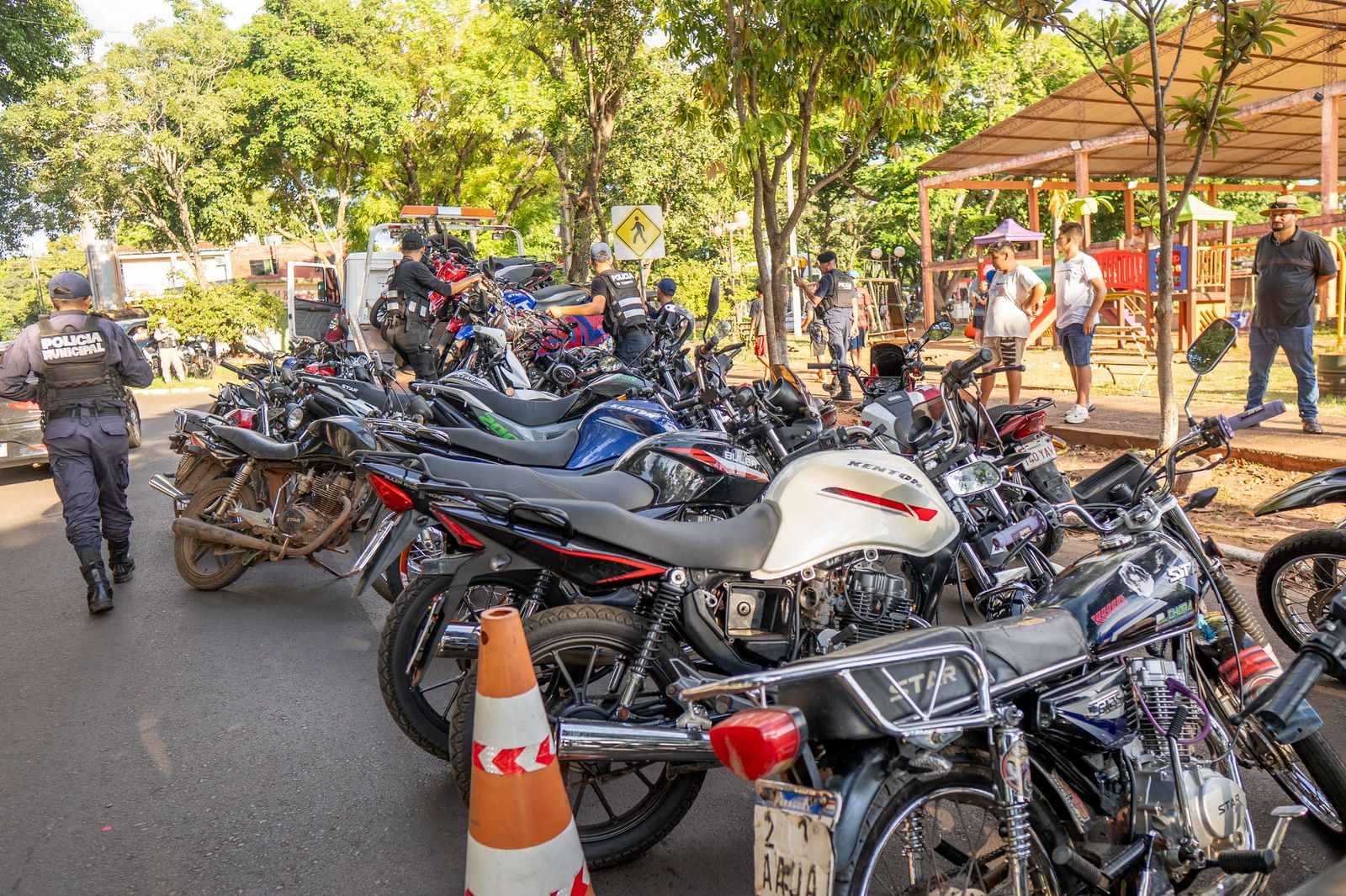O primeiro procedimento foi realizado na noite de sábado (24) e na madrugada de domingo (25), na avenida San José, no bairro San Isidro, e no acesso à rua 2000, no bairro Ciudad Nueva. Como resultado dessa operação, 97 motocicletas foram apreendidas e encaminhadas ao Pátio Municipal.
