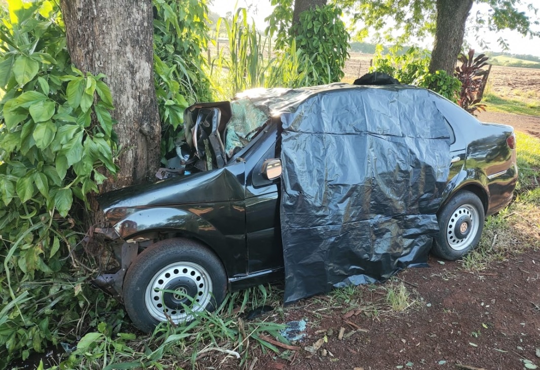 Fiat Siena com placas do Paraguai saiu da pista e colidiu contra árvore; causas serão investigadas