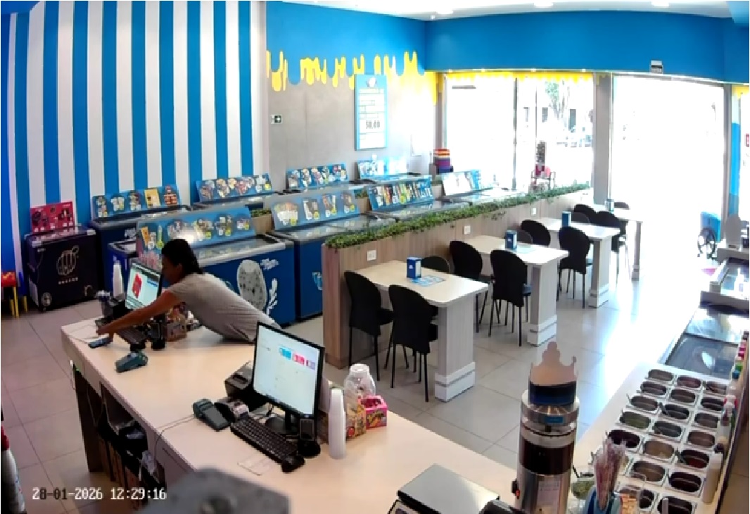 Câmera flagra mulher furtando celular de funcionária em sorveteria na Avenida República Argentina