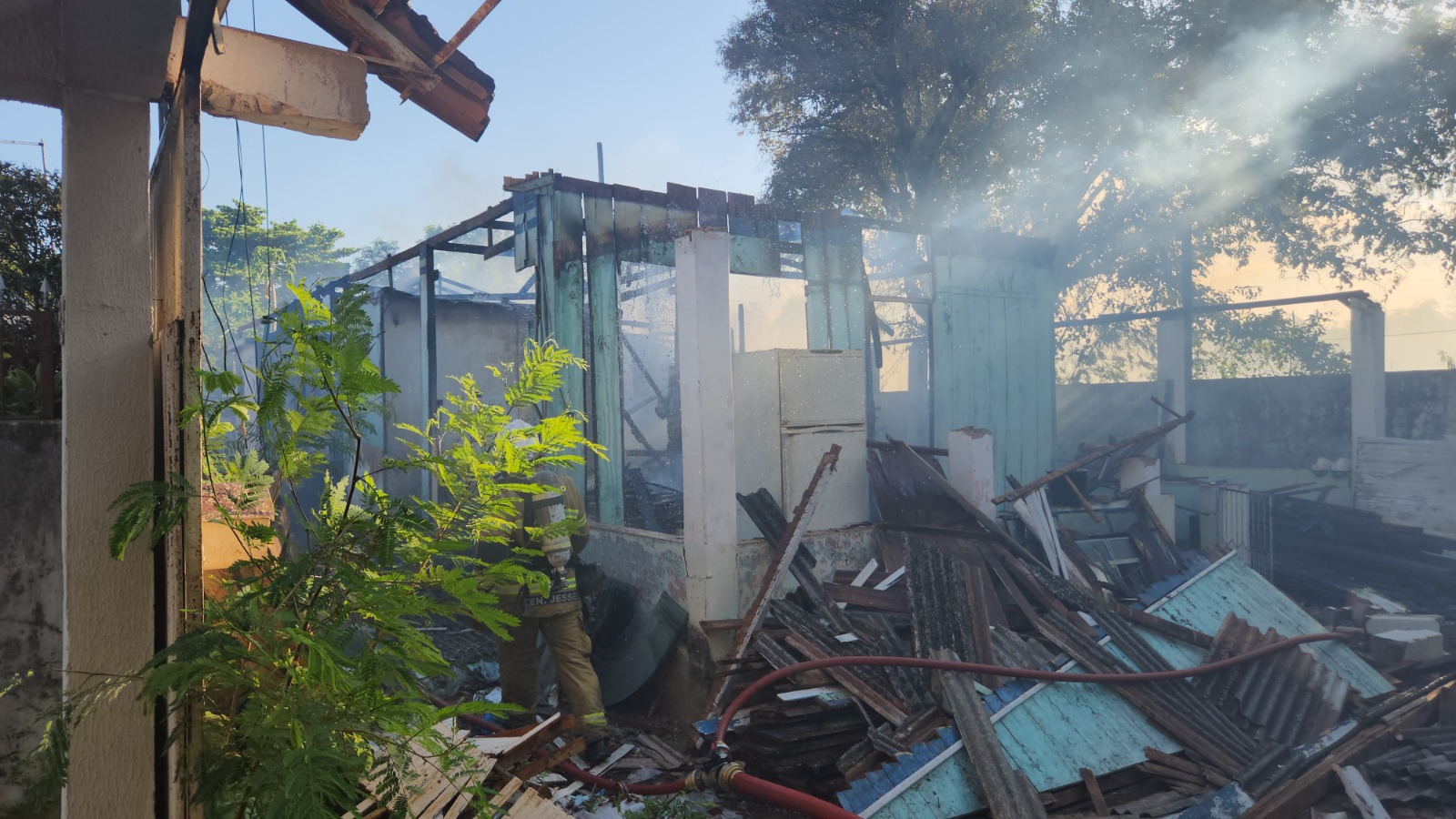 Uma casa de madeira foi quase completamente destruída por um incêndio na tarde desta sexta-feira (6), no Beco Caaguaçu, na Vila Paraguaia, em Foz do Iguaçu. O fogo se espalhou rapidamente e pôde ser visto de uma rua lateral, chamando a atenção de moradores da região.