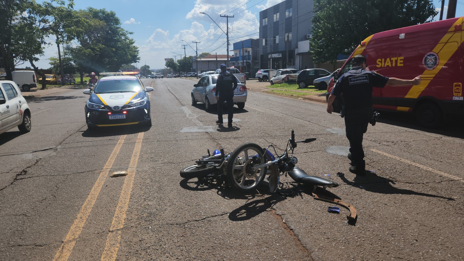 Uma equipe da Guarda Municipal que passava pelo local prestou apoio à ocorrência e auxiliou na sinalização da via, garantindo a segurança do trânsito até a retirada dos veículos.