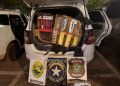 Três veículos carregados com mercadorias irregulares foram apreendidos. No local, um homem foi abordado e, após consulta, constatou-se a existência de mandado de prisão em aberto por inadimplência no pagamento de pensão alimentícia.