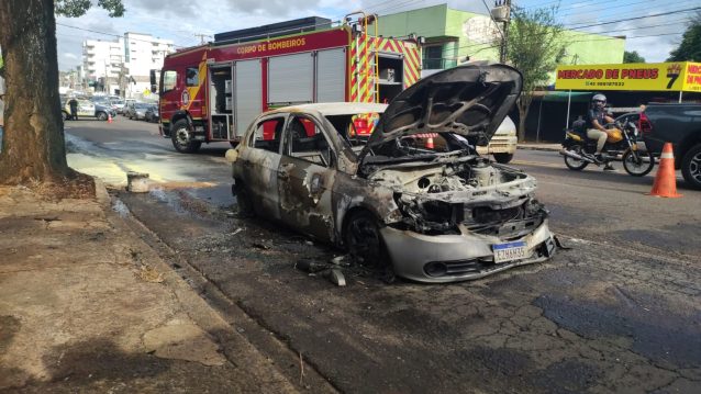 O fogo se alastrou rapidamente pelo interior do automóvel. Em poucos minutos, as labaredas atingiram os bancos e tomaram conta de toda a estrutura.