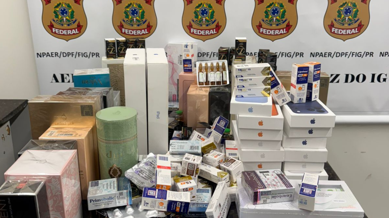PF apreende mais de R$ 100 mil em produtos irregulares no Aeroporto de Foz. Foto: PF