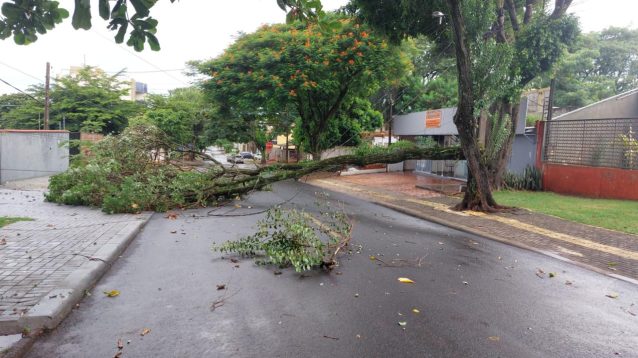 A Defesa Civil informou que, na tarde desta segunda-feira (16), por volta das 16h, foi registrada chuva acompanhada de rajadas de vento em Foz do Iguaçu. O temporal provocou a queda de galhos e algumas árvores em diferentes pontos da cidade.