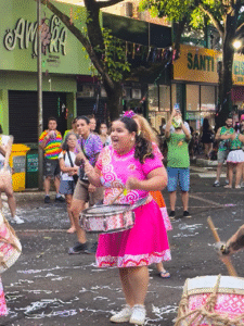 Quem circulou pela Avenida Brasil foi brindado com a faceta artística da vereadora Valentina, figura central do Bloco das Martinas. Como puxadora de cortejo, ela mostrou que a política e a folia bebem da mesma fonte: a energia popular. É difícil medir onde termina a parlamentar e começa a foliã, mas a verdade é que Valentina mantém em ambos os terrenos o mesmo grau de irreverência. A baixinha é danada!