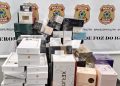 Também foram retidas diversas mercadorias descaminhadas, incluindo perfumes, aparelhos celulares, projetor, smartwatch e acessórios eletrônicos. Ao todo, mais de 170 itens foram encontrados sem a devida documentação fiscal, com valor estimado superior a R$ 200 mil.