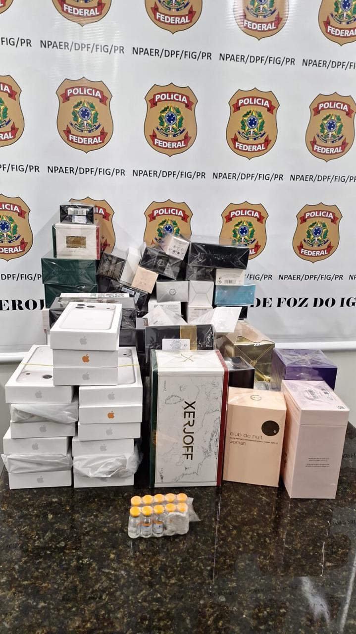 A Polícia Federal apreendeu centenas de medicamentos e produtos importados descaminhados durante fiscalização realizada no Aeroporto Internacional de Foz do Iguaçu, nesta quarta-feira (18/02), em Foz do Iguaçu.