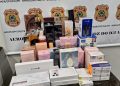 Durante as inspeções, os policiais identificaram aproximadamente 200 medicamentos contrabandeados do Paraguai, entre eles ampolas de esteroides anabolizantes e canetas emagrecedoras, além de outros produtos com comercialização e entrada proibidas ou irregulares no país.