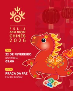 A Foz do Iguaçu recebe, neste domingo (22), a celebração do Ano Novo Chinês 2026 com programação cultural gratuita na Praça da Paz.