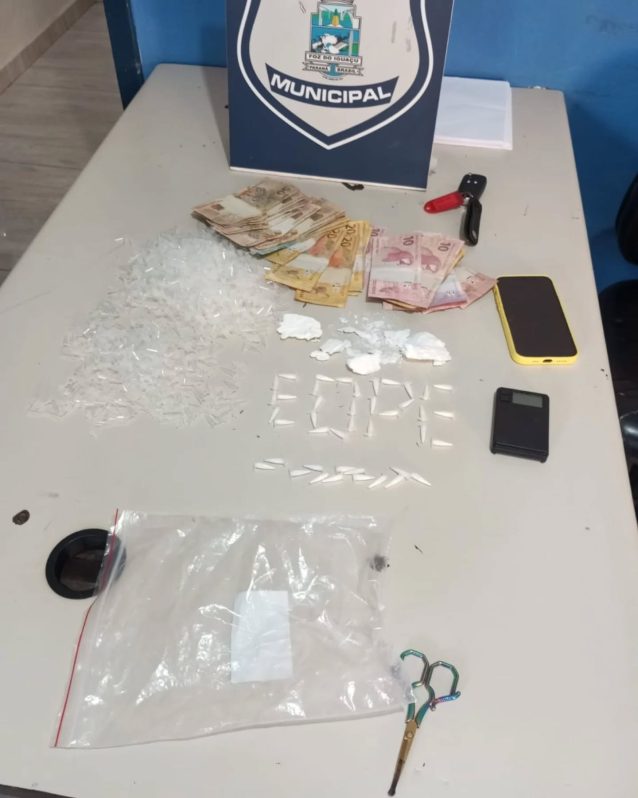 No interior do imóvel, a equipe encontrou uma porção maior de cocaína, além de uma balança de precisão e R$ 1.208,00 em dinheiro, fracionados em notas de diversos valores — característica comum na prática do tráfico de drogas.