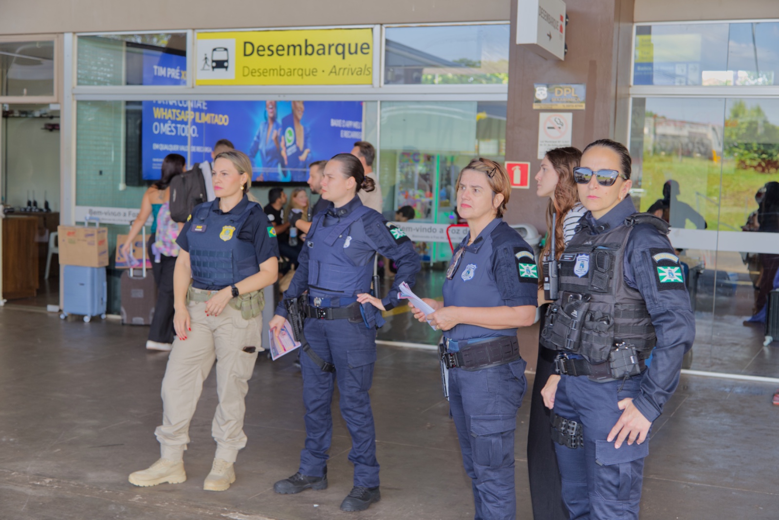 Na manhã desta segunda-feira (2), forças de segurança promoveram uma ação integrada de conscientização na Rodoviária Internacional de Foz do Iguaçu com foco no enfrentamento à importunação sexual no transporte coletivo.