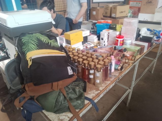 Durante a vistoria, os servidores perceberam que o porta-malas estava cheio de mercadorias trazidas do Paraguai. Enquanto os produtos eram retirados para conferência, uma mochila chamou a atenção da equipe.